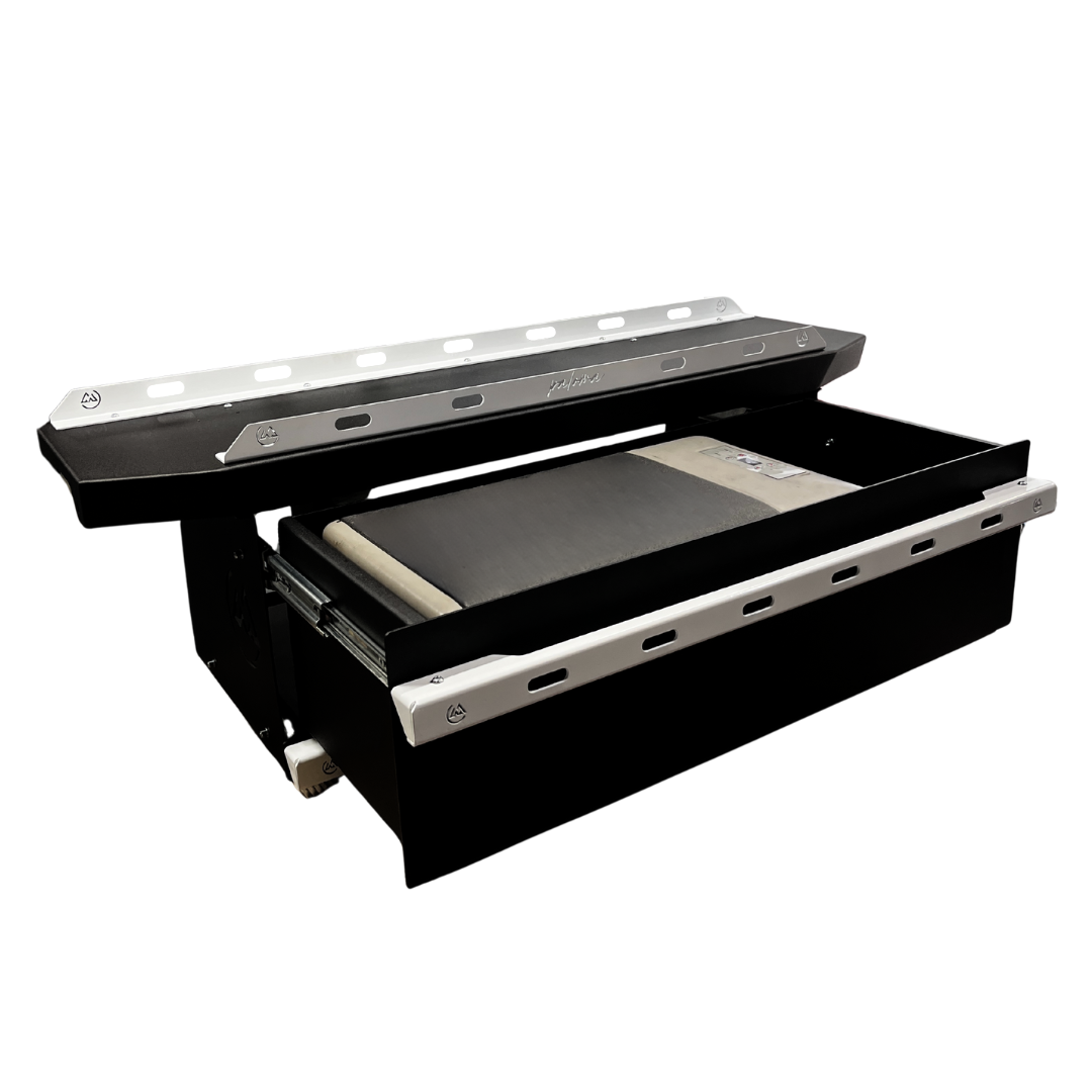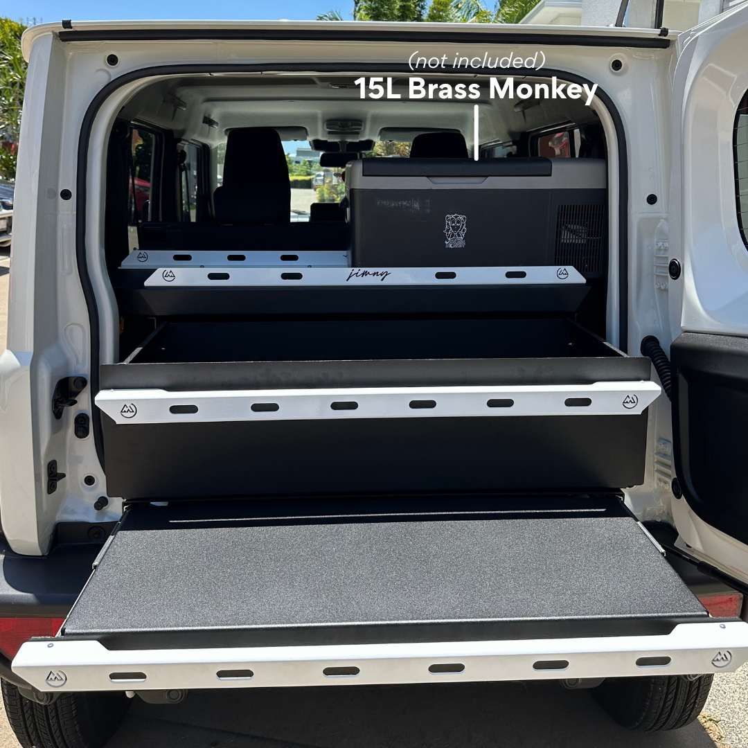 We don’t currently stock it, but we recommend the 15L Brass Monkey fridge for our XL Adventure Set. It fits perfectly either on top of the tray or inside the drawers.